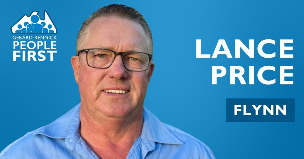 Vote 1 Lance Price for Gerard Rennick People First to help elect a hard-working representative in Flynn.