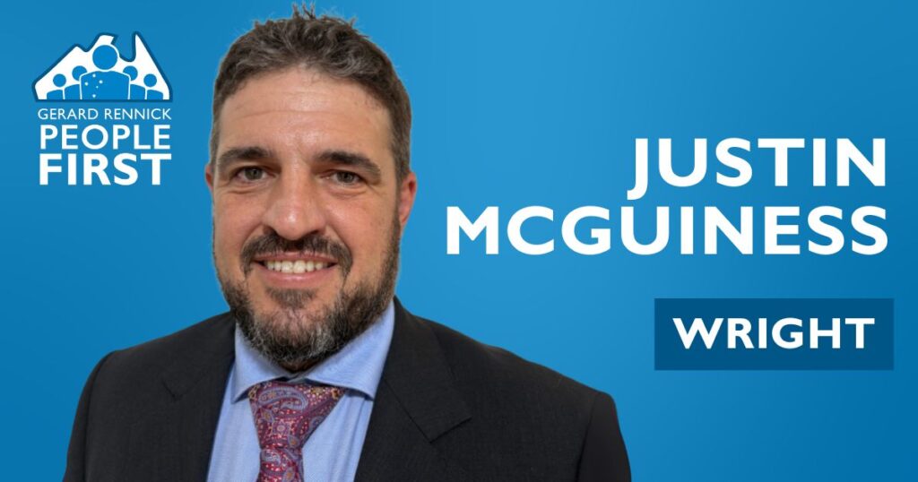 Vote 1 Justin McGuiness for Gerard Rennick People First to help elect a hard-working representative in Wright.